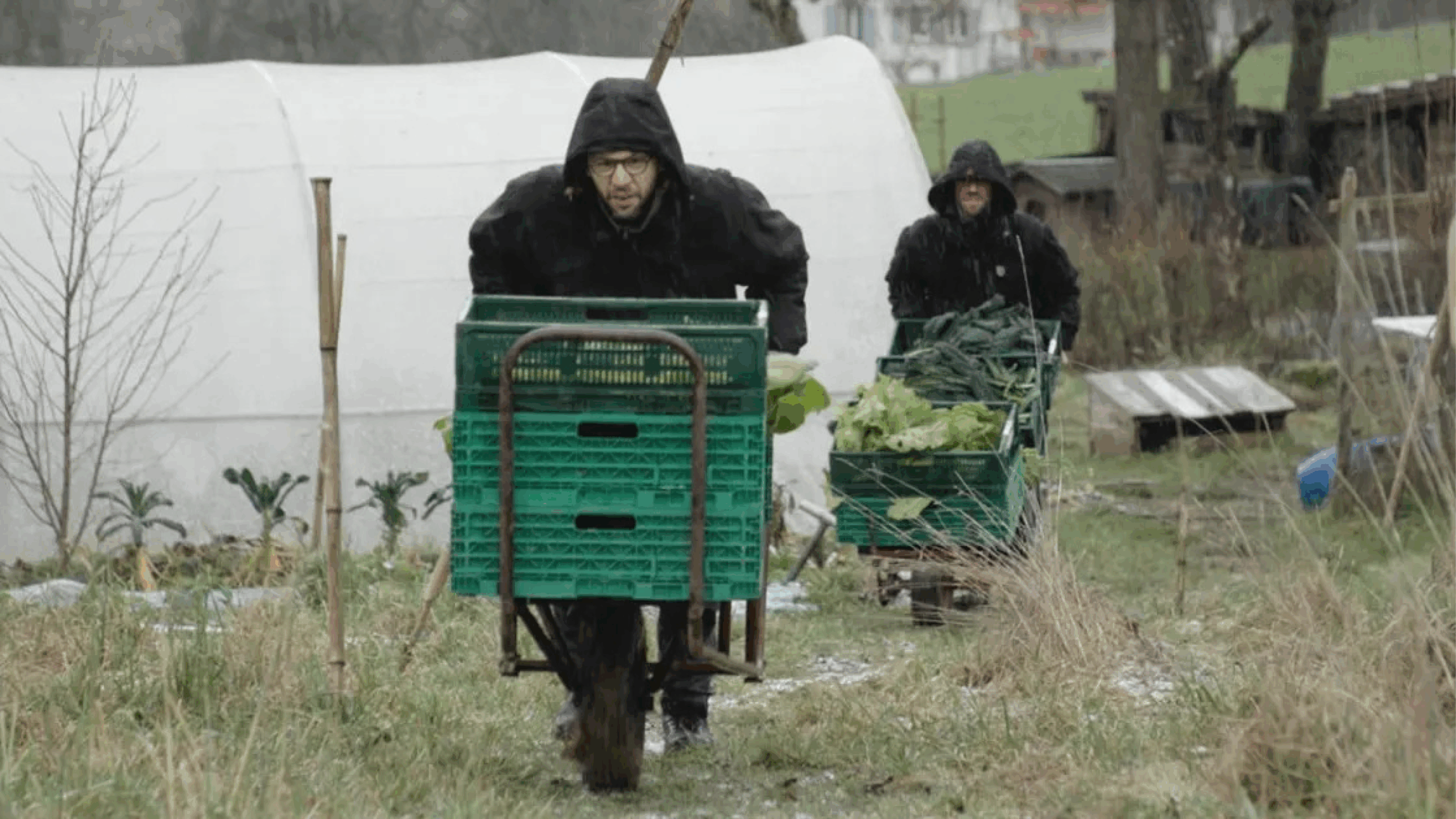 Depuis 3 ans, Pierre-Gilles et Antoine exploitent le terrain de Praz Bonjour pour y cultiver des légumes de manière entièrement naturelle. Ce travail n’est pas de tout repos, faisant face à des menaces quotidiennes : climat changeant, ravageurs, maladies… sans compter la pression financière qui pèse lourd.