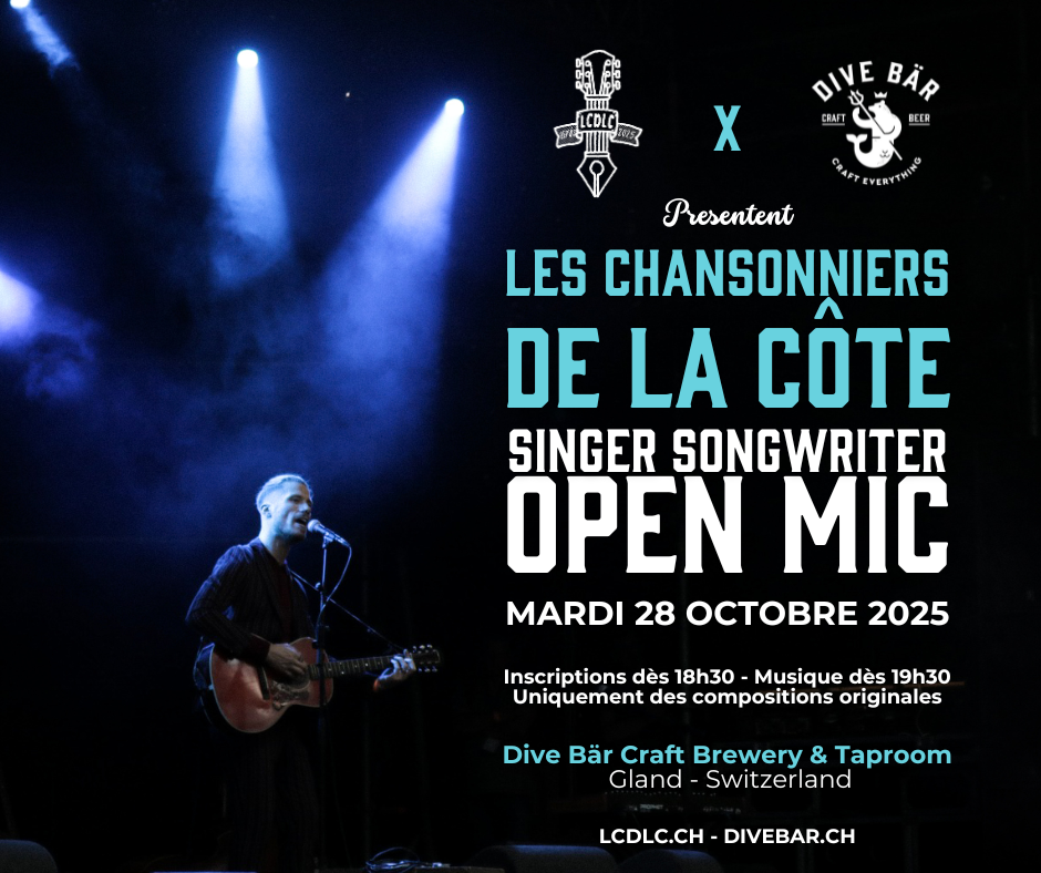 | Une super soirée scène ouverte avec Les Chansonniers de La Côte au Dive Bär pour quelques heures de fun musical. Limite de 3 chansons par artiste. Inscription pour les musiciens à partir de 18h30, la musique commence à 19h30. On se voit là-bas !
