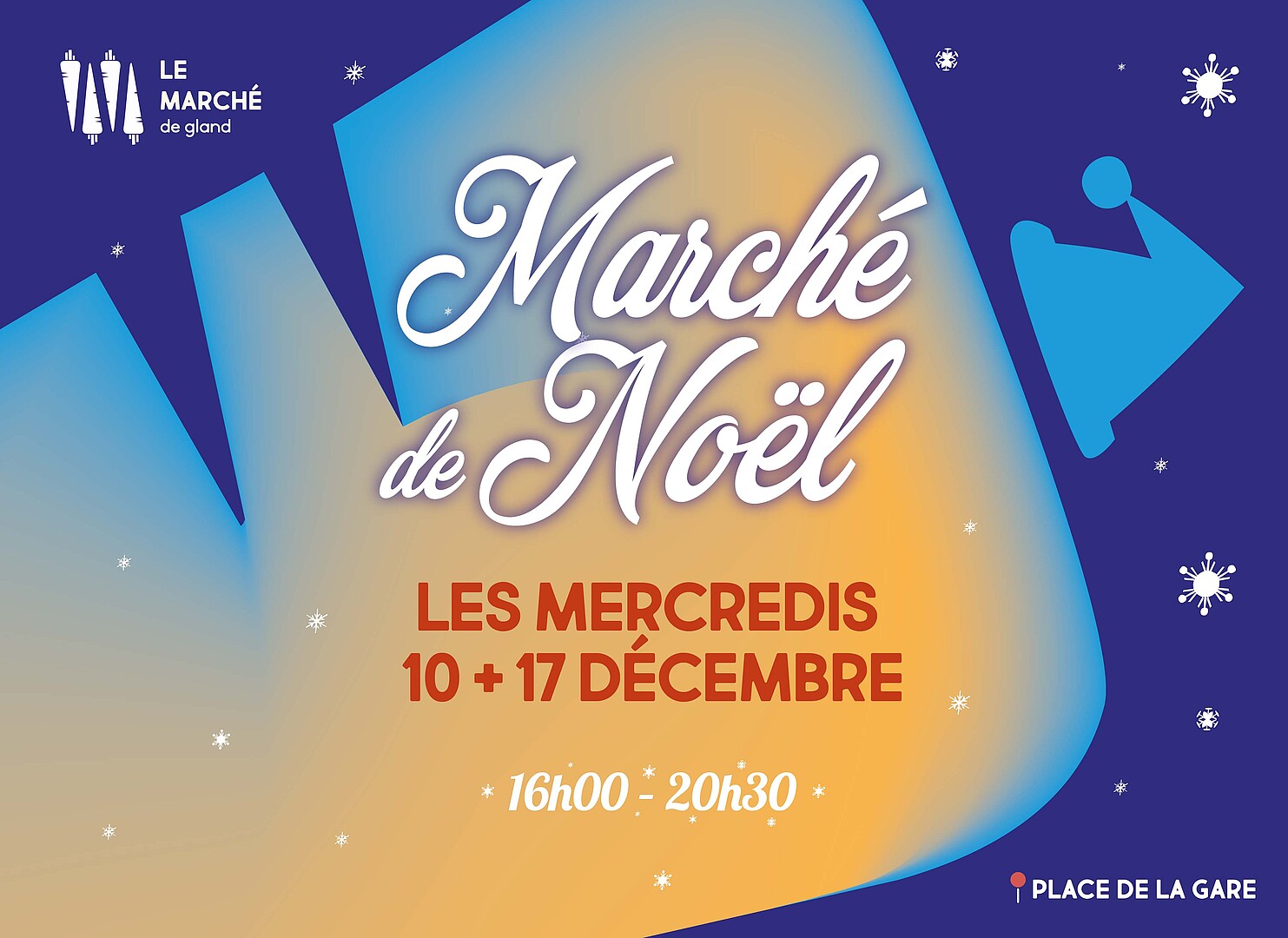 Le Marché de Gland se transforme en un véritable village de Noël les mercredis 10 et 17 décembre 2025, de 16h00 à 20h30 avec plusieurs stands d’artisans et de producteurs locaux.